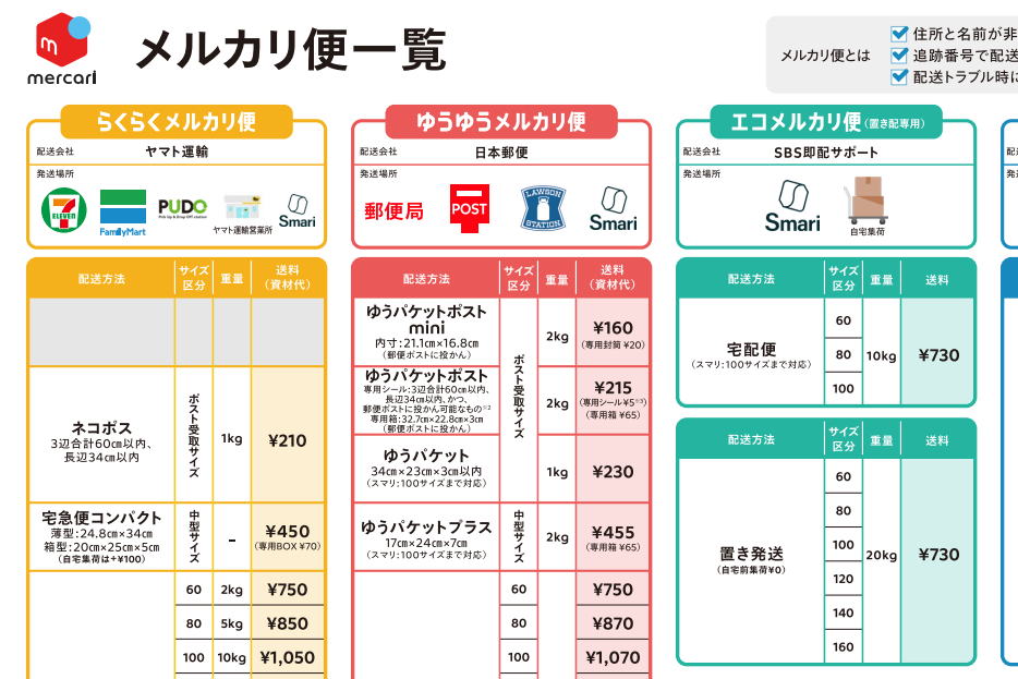 메루카리에서 물건 판매가 이루어지면, 물건을 보낼 수 있는 방법은 다양합니다.