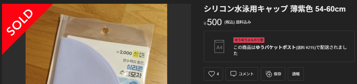 저는 한국에서 2000원짜리 실리콘 수영모자를 일본으로 갖고와서 메루카리에서 500엔에 판매,