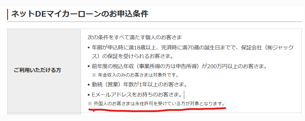 - 메가뱅크(MUFJ, SMBC, 리소나은행 등)의 자동차론은 외국인이 빌리려면 영주권이 필수